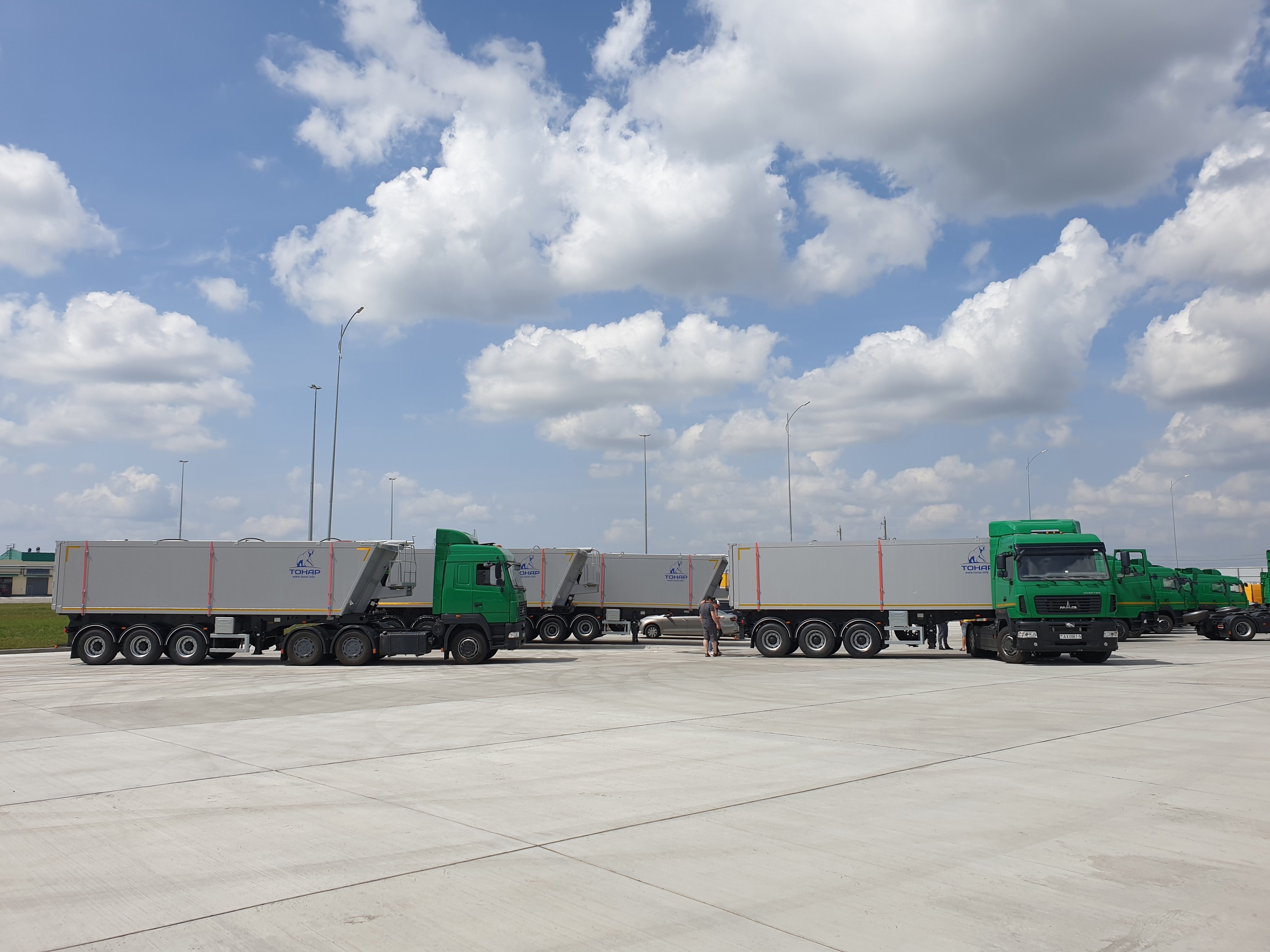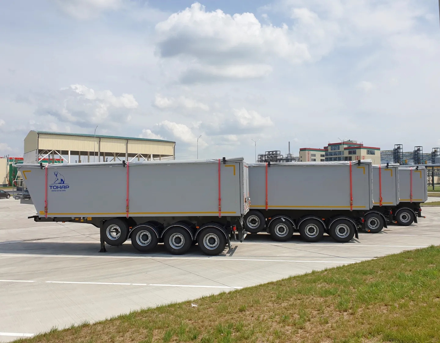Компания Arimax передали заказчику первые 4 из 15 алюминиевых самосвальных полуприцепов ТОНАР-9594 с задней разгрузкой и объёмом кузова 42 м3.