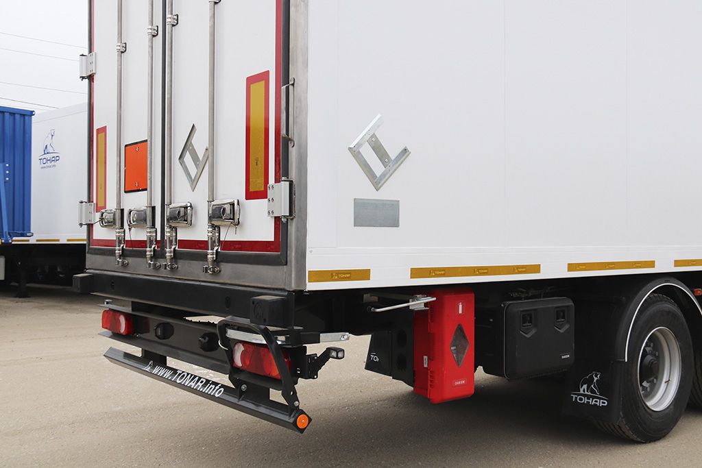 Тонар R3-14EXIII — это 3-х осный изотермический полуприцеп для перевозки опасных грузов. Модель имеет зависимую подвеску, на продольных упругих рычагах с пневматическими упругими элементами и телескопическими гидравлическими амортизаторами. Крыша, боковые стенки и пол полуприцепа изготовлены из сэндвич-панелей. Крыша оборудована 5-ю мощными светодиодными фонарями, которые автоматически срабатывают при открывании дверей. Боковые части корпуса обладают усиленной жесткостью, а пол покрыт алюминием, создавая герметичную структуру вкупе с боковой отбортовкой. Тонар R3-14EXIII способен перевозить груз весом в 25 т, а также имеет объем в 90 куб.м. Это надежная, функциональная и просторная модель для выполнения специализированных задач.